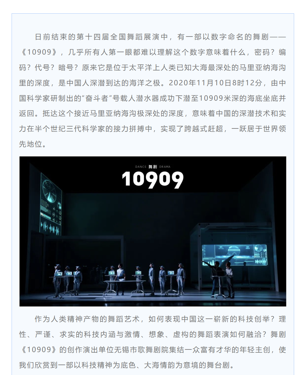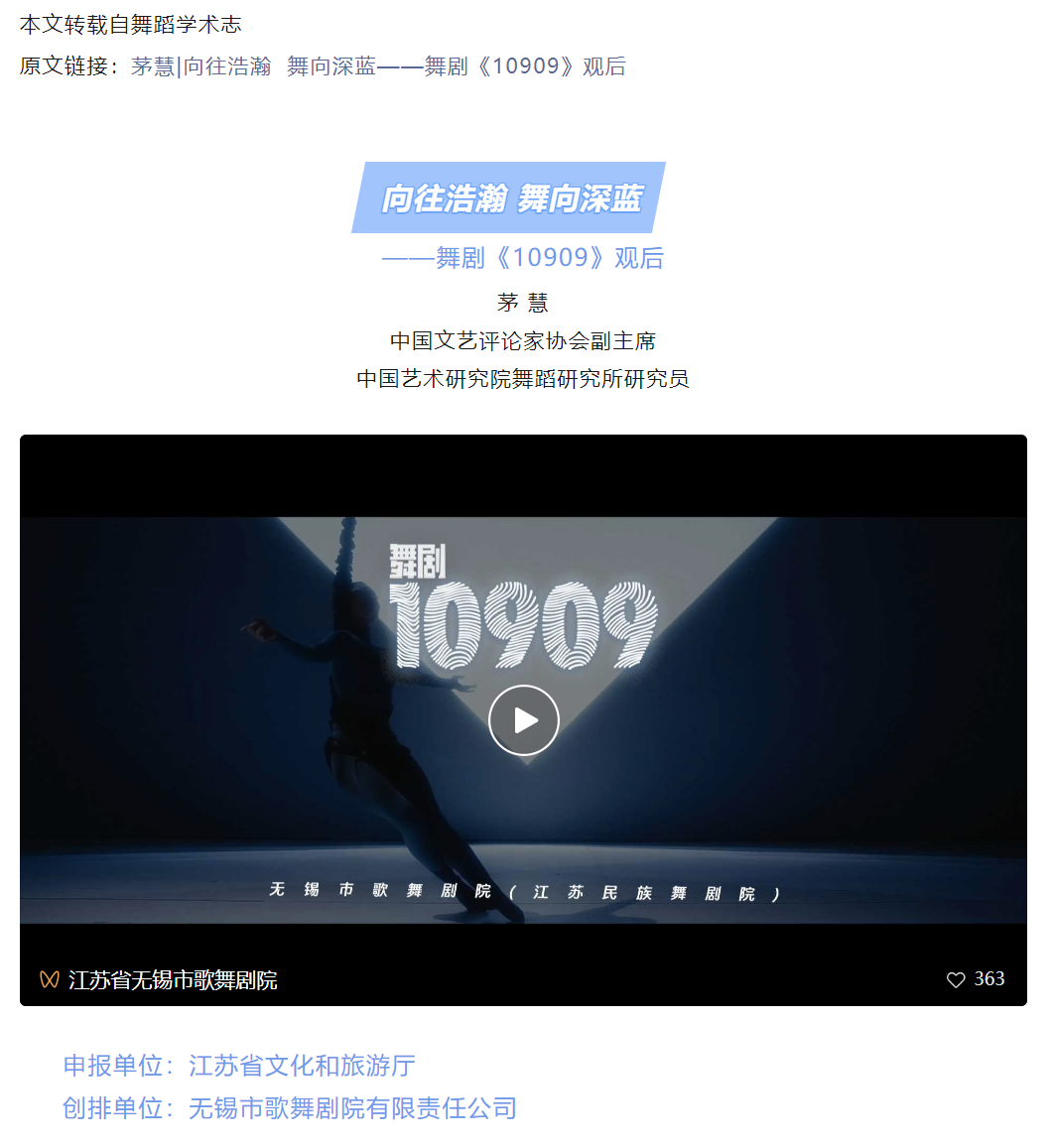 转载|茅慧:向往浩瀚 舞向深蓝——舞剧《10909》观后